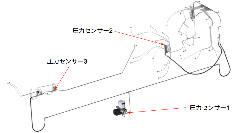 圧力センサーを各主配管の末端・ポンプ吐出口付近に設置し、潤滑システムの安全性を弊社にて確認させて頂く事も可能です。